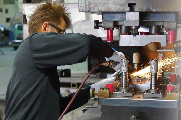 プレス金型設計、設計、量産、レーザー加工、機械加工、組付け、塗装など様々な工程を自社内で行っていますので様々な技術を身に着けることが可能です。